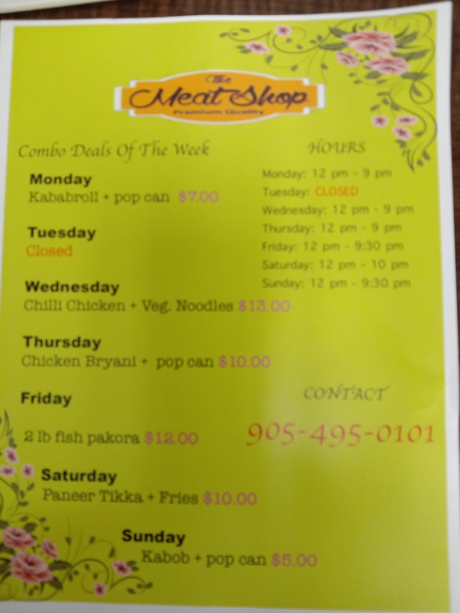 The Meat Shop Menu